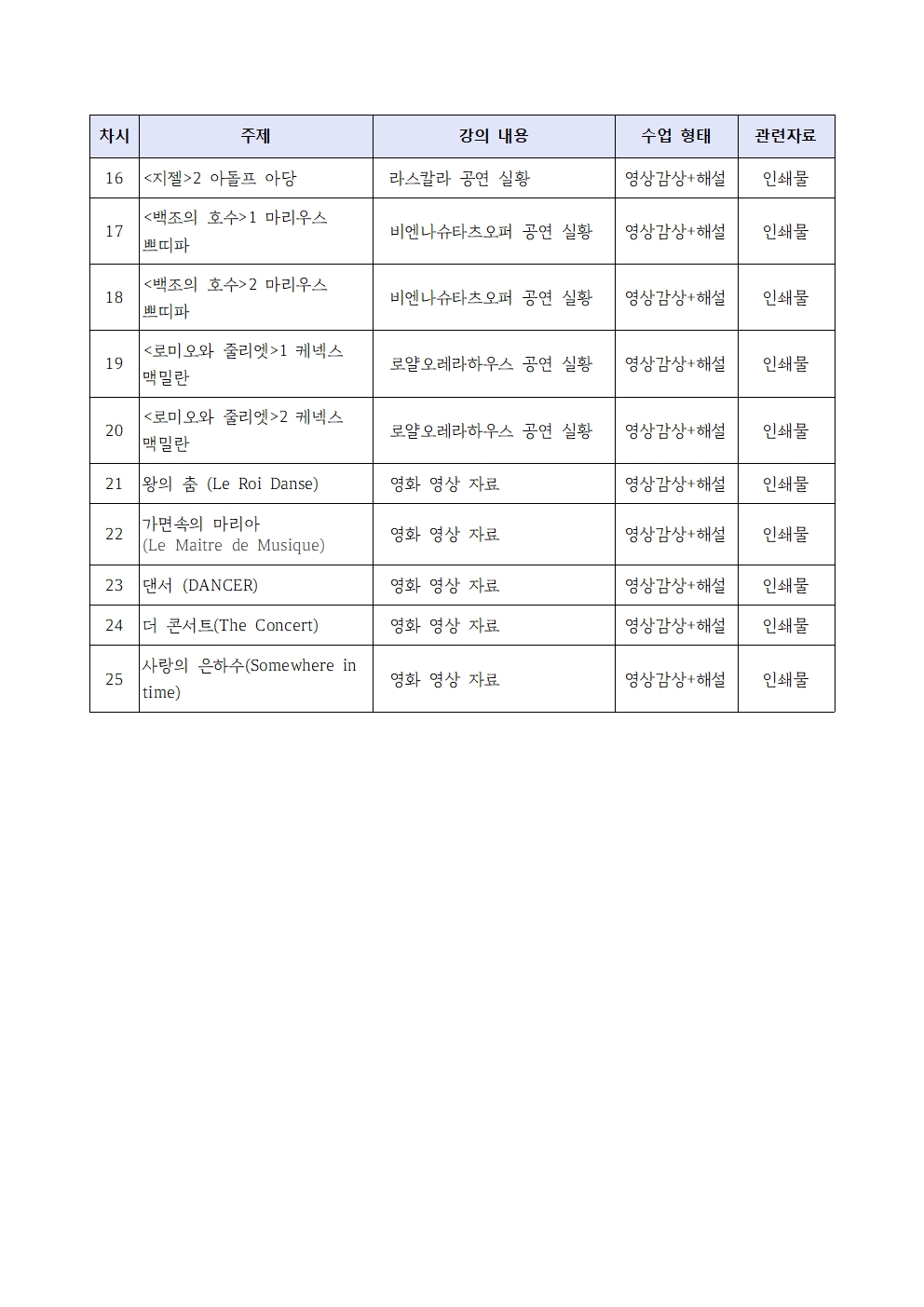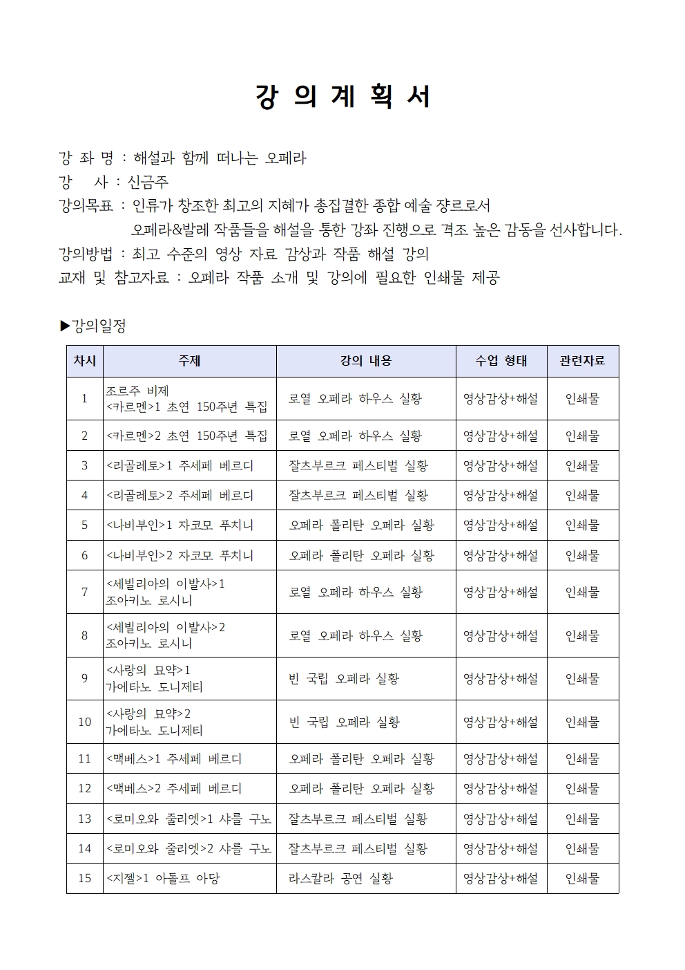 동탄교육관 『해설과 함께 떠나는 오페라』강의계획서