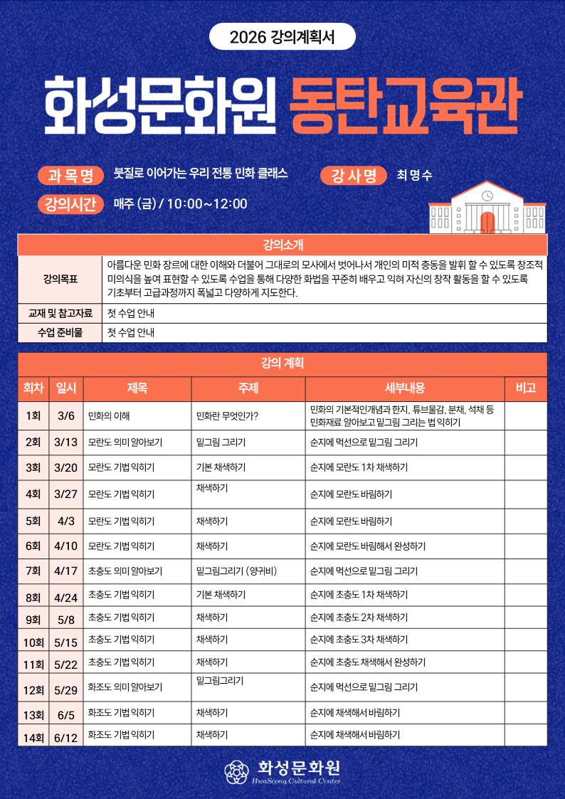 2026 동탄교육관【붓질로 이어가는 우리 전통 민화 클래스】- 강의계획서