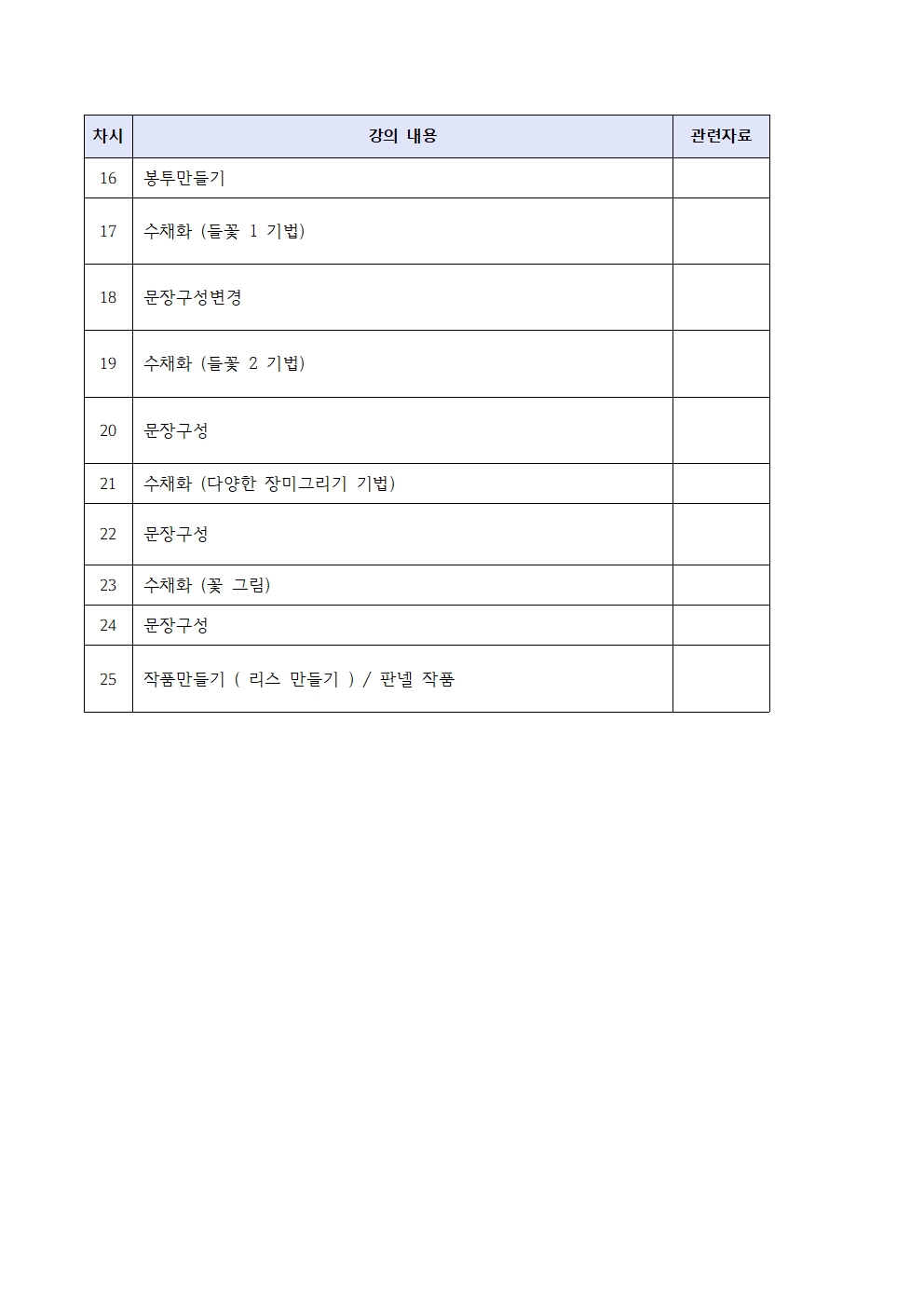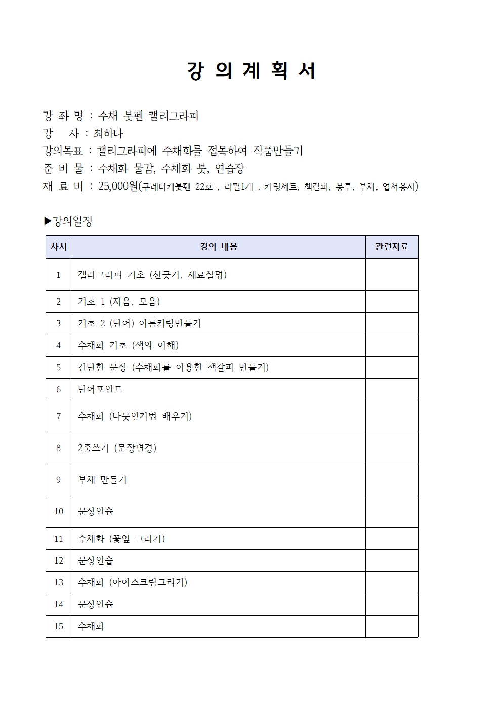 동탄교육관 『수채 붓펜 캘리그라피』강의계획서