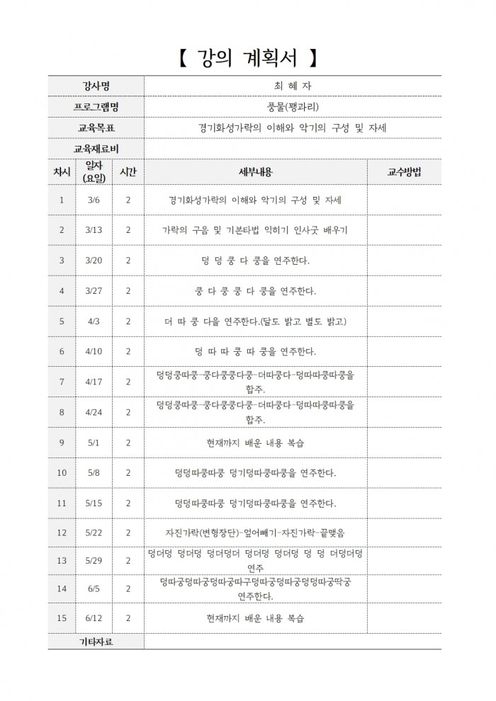 2025 꽹과리 강의계획서