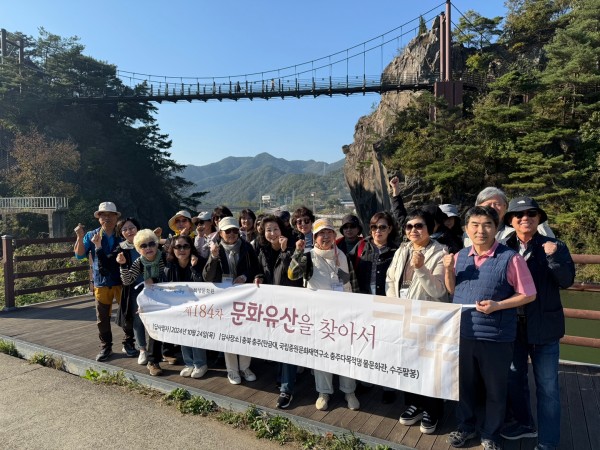 184차 문화유산을 찾아서_충주 작성자 화성문화원 작성일 2025-04-11 조회 80회 문화유산을 찾아서 184차 지난 10월 24일 화성문화원은 충주 문화유산을 직접만나볼 수 있는 시간을 가졌습니다. 매주 목요일에 진행되고 있는 "문화유산을 찾아서" 프로그램에 많은 참여 부탁드립니다. 감사합니다. 목록보기 Powered by KBoard