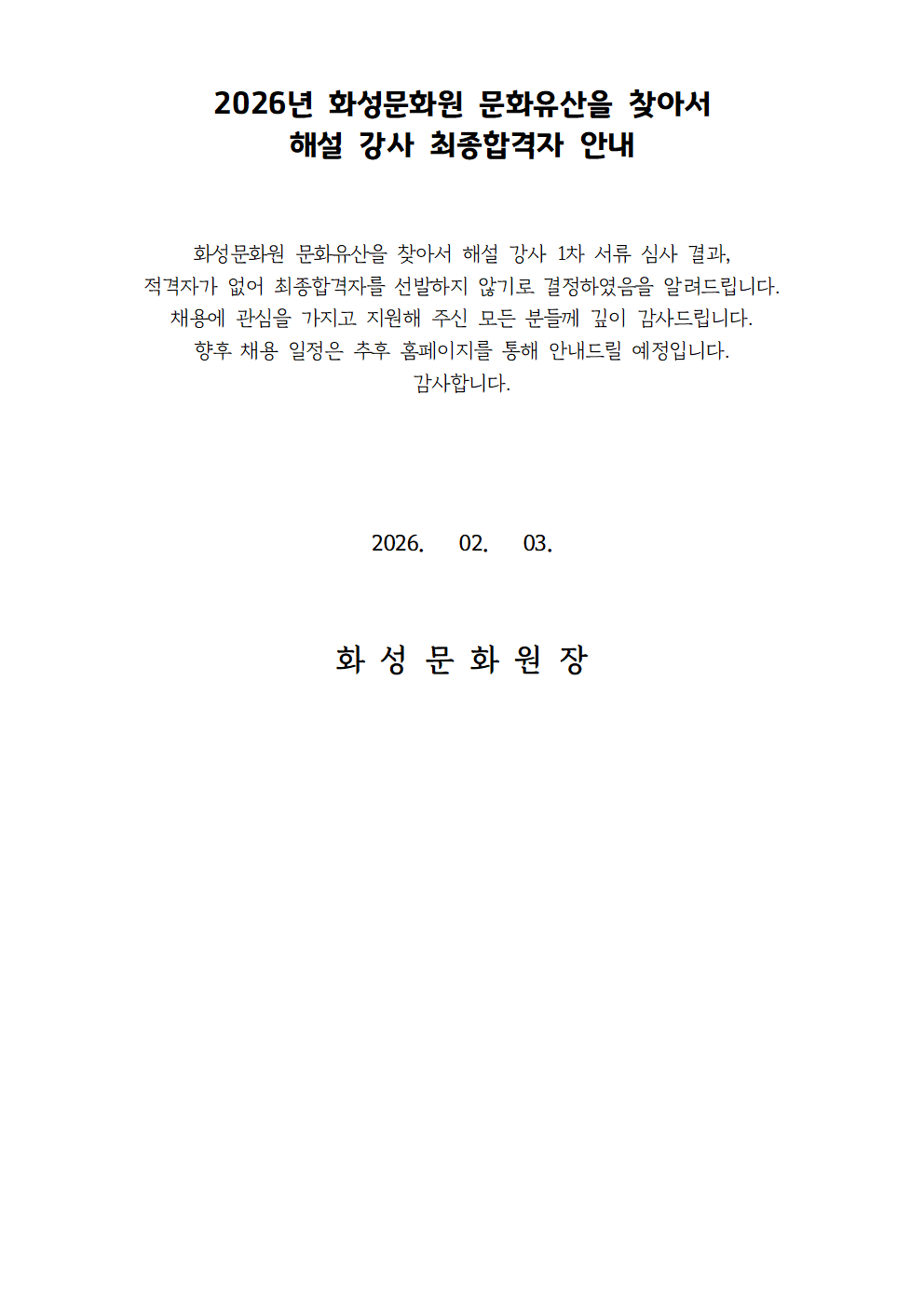 2026년 화성문화원 문화유산을 찾아서 해설 강사 모집 최종결과 안내