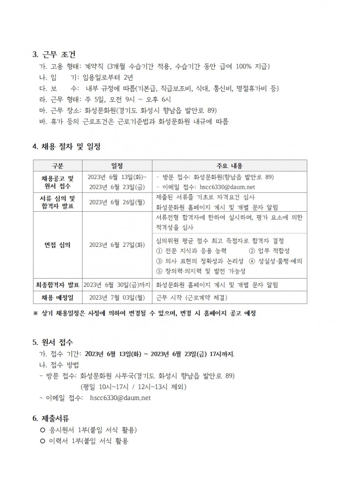 화성문화원 직원 채용 공고(수정)
