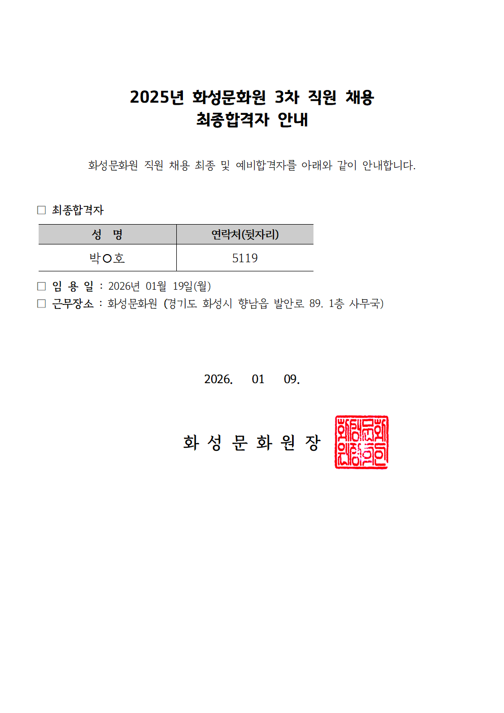 2025년 제3차 직원 채용 최종합격자 발표